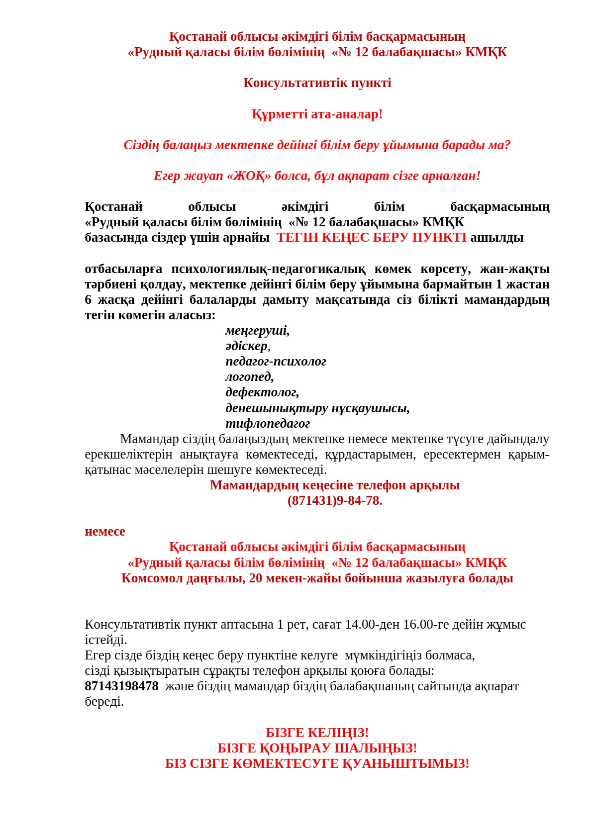 Бізге жазыңыздар